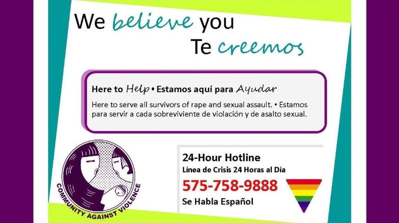 Our 24-Hour Helpline is: 575-758-9888 or call SANE 24-Hour Helpline is: 575-751-8990